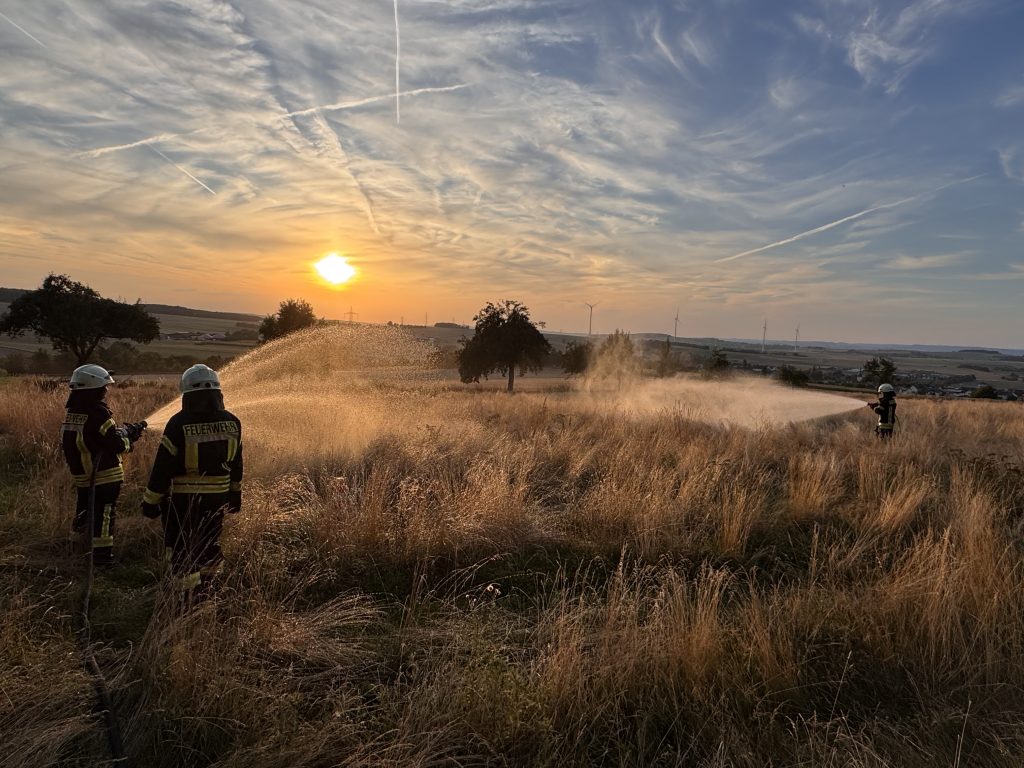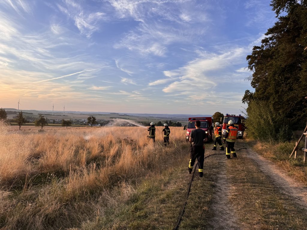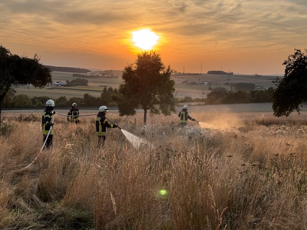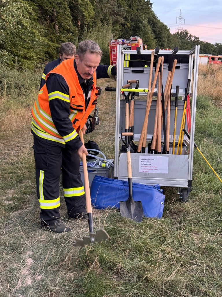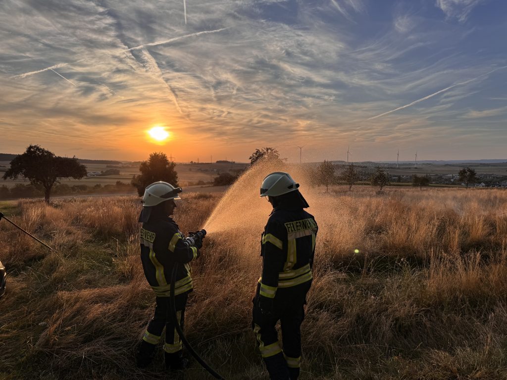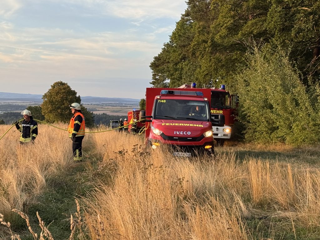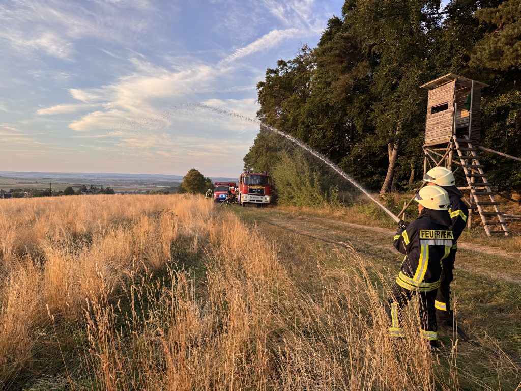 Trockene Böden sind gerade im Sommer oft ein guter Boden, damit Brände einfach entstehen und sich schnell ausbreiten können. Daher stand am vergangenen Dienstag eine Übung zum Thema „Flächenbrand“ auf dem Programm – ein Thema, dem sich die Feuerwehren in den letzten Jahren immer intensiver widmen. Auf dem Galgenberg fand sich ein ideales Objekt für die Übung, bei dem das Material wie Löschrucksäcke, Schnellangriffseinrichtungen und Waldbrandpatschen ausgiebig ausprobiert werden konnten.