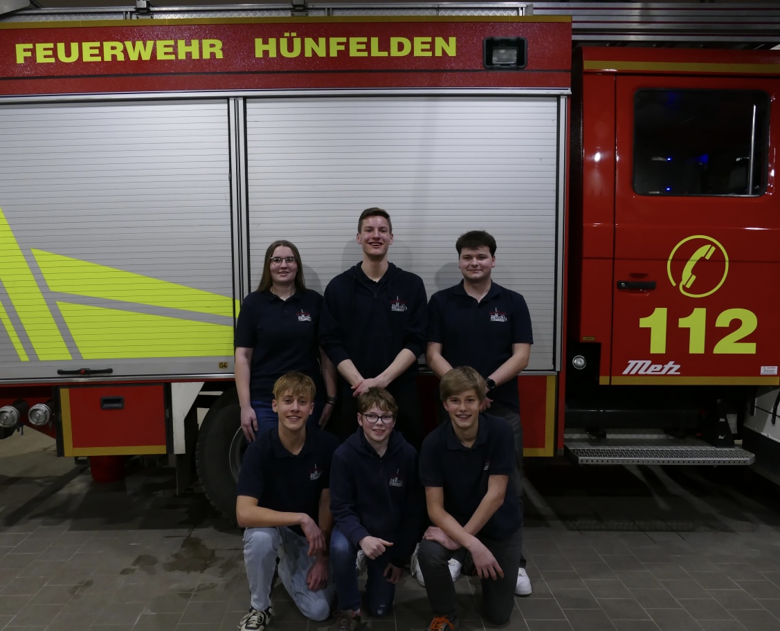 Neuer Jugendfeuerwehrausschuss (v. l. n. r.): Johanna Walther, Jannes Kees, Jonas Schmidt, Laurin Ronshausen, Constantin Ickstadt, Yannik Gauck. Es fehlt: Constantin Grün.
